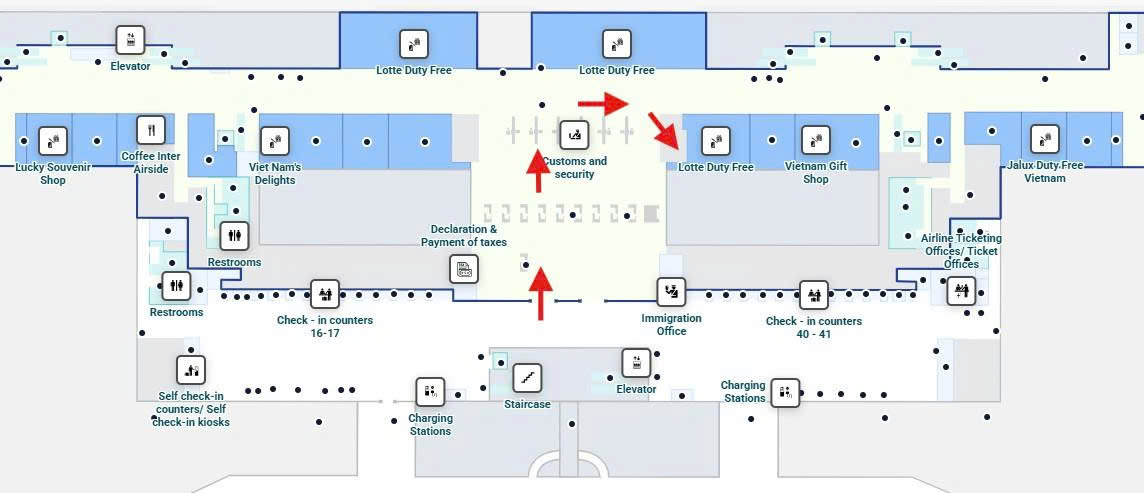 비행기 탑승 전 여유롭게 휴식하거나 업무를 처리하기에 적합한 공간입니다.