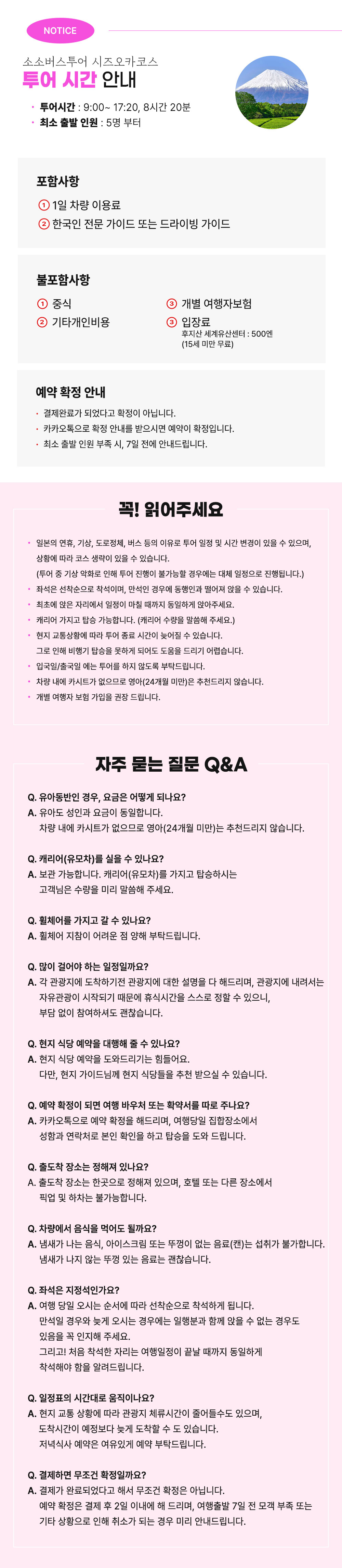 [시즈오카 출발]후지산 포토스팟 (타누키호수,시라이토폭포,꿈의대교) 1일 당일 소소버스투어