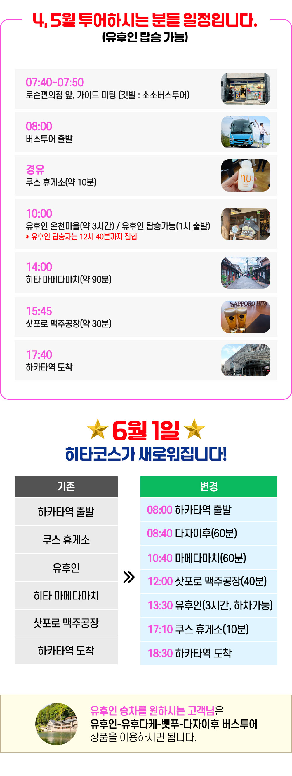 [유후인 승차 하차] 후쿠오카 유후인 버스투어 히타 여행 일일 당일 현지 소소 버스투어
