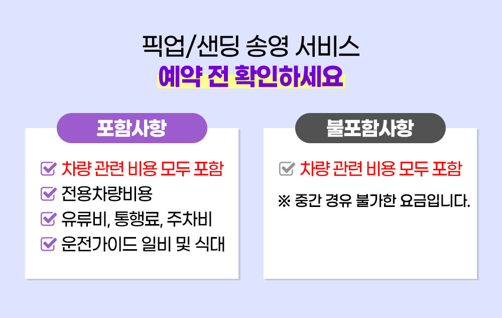 도로비(톨비), 주차비, 유류비 등 제반 비용 모두 포함