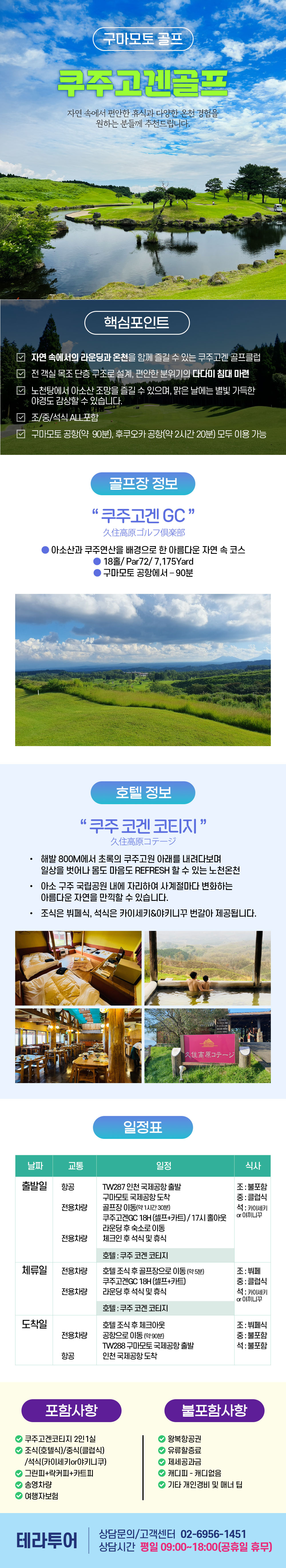 ※ 1일차 쿠주CC불가시 외부라운딩 (아소오츠/아소그린힐/미나미아소 등) 으로 대체되며, 추가비 발생 (1일차기준)
