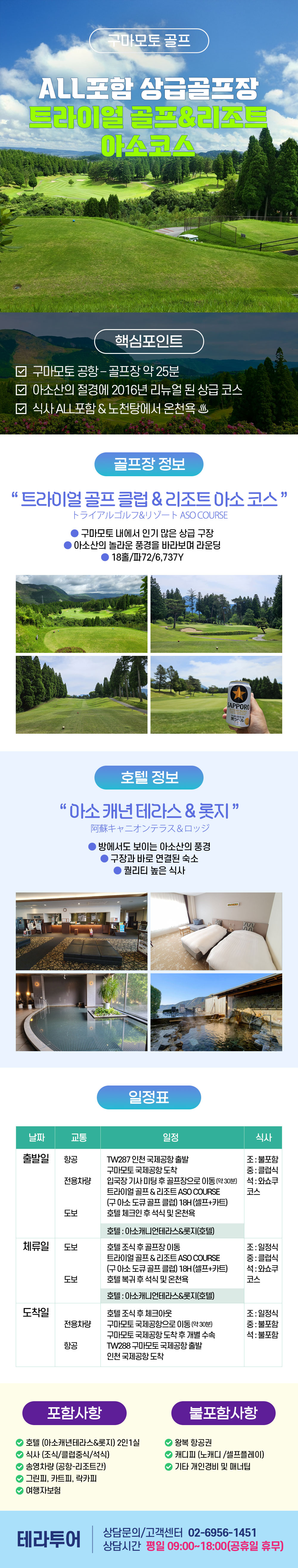 ※ 조조 스케쥴의 경우 1일차 트라이얼 아소코스 불가시 외부라운딩으로 대체될 수 있으며, 30,000원/1인 별도 UP – 요청베이스